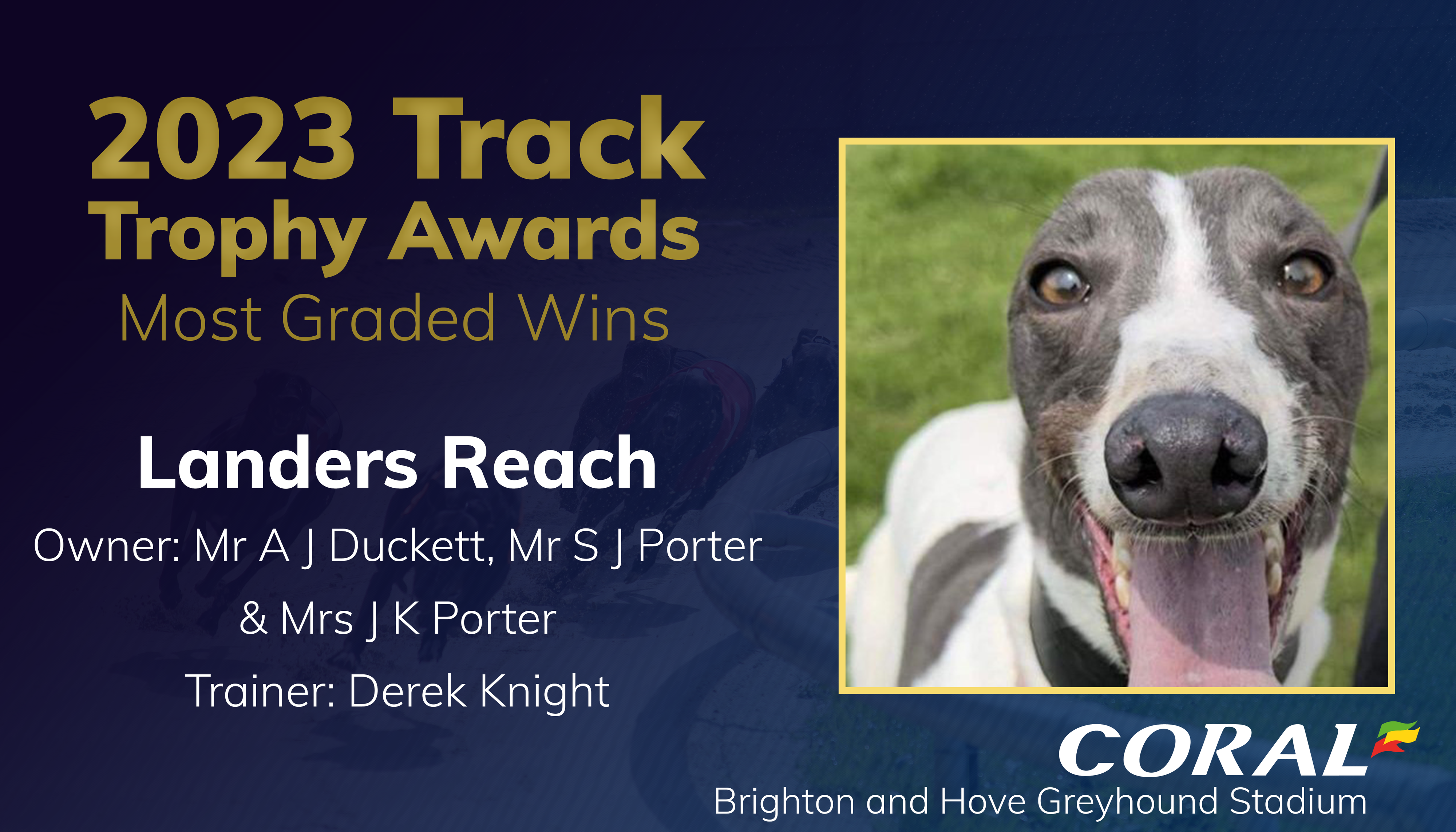 The British bred January ’21 whelp took off during 2023. It took the daughter of Droopys Gold and Westmead Lola two races to get 2023 up and running with a win over 285 metres in a D4 graded affair. She followed that up with another four wins all over 285 metres including a top grade victory before being stepped up. From only seven races over 500 metres she won three times in A9, A8 races and an Intertrack race. After a seasonal break it only took her one race before being back to winning ways over 285 metres. Before the end of the year she added another three wins to make it twelve in total. Her twelve wins from just thirty one races gave her an impressive strike rate of 29% and the most graded victories for 2023.