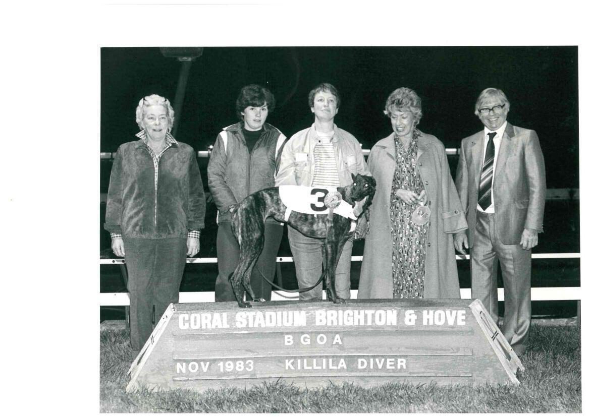 Merry Maestro, co-owned by John and Eileen Warwick, completed a six-timer when landing the 1982 Cosmic Orbit Young Puppies Trophy (515m) at Hove, while Lisroe Exile gave her a second success in the event when having Oriental Darkie and Sambuca in arrears three years later.
